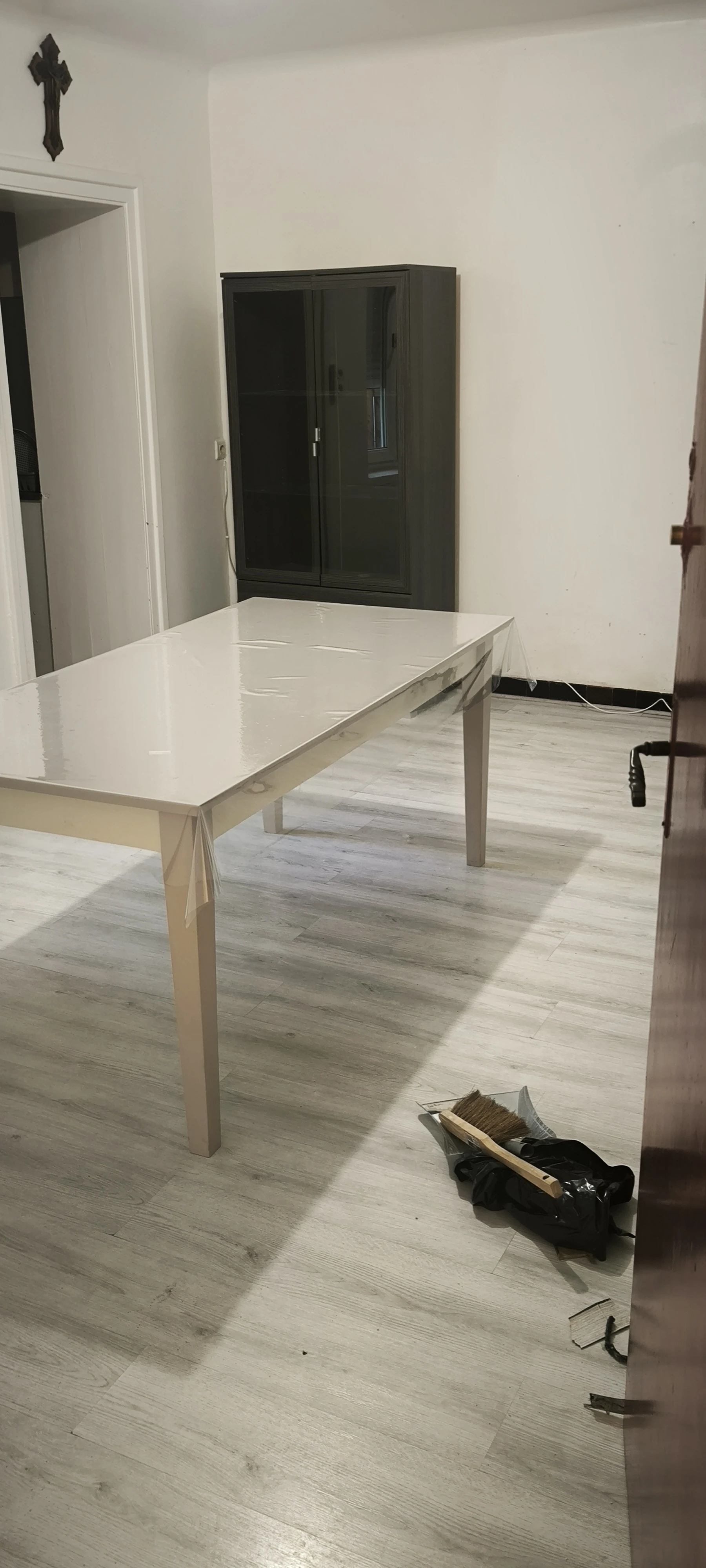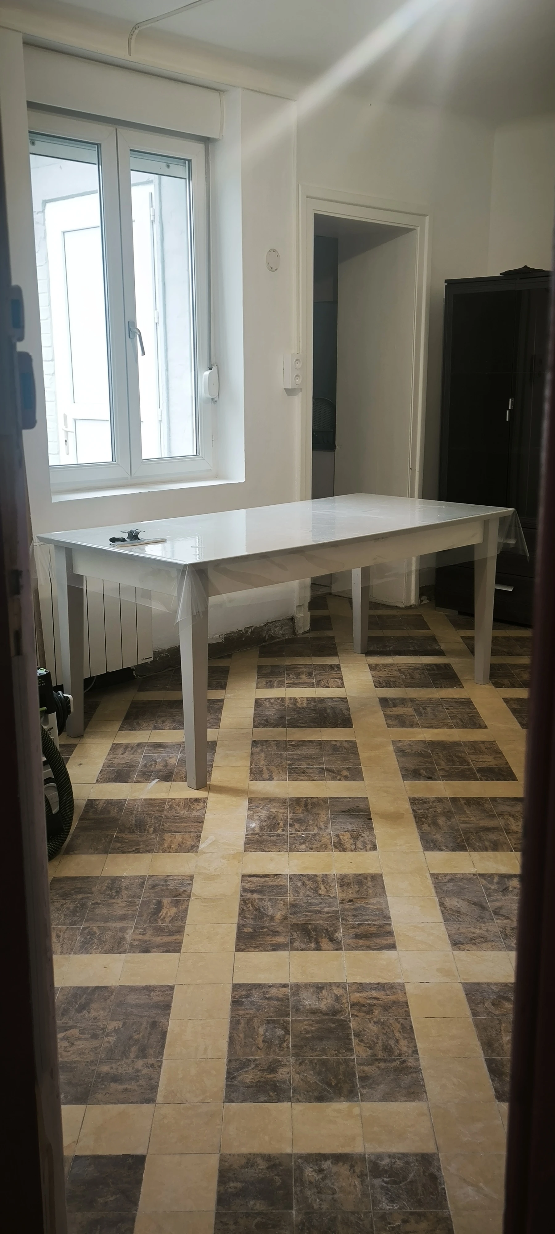 Reprise des enduits sur les bas de murs avant mise en peinture en blanc velours.
